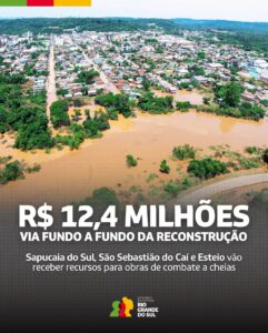 O governo do Estado liberou uma nova rodada de repasses do Fundo a Fundo da Reconstrução para os municípios de Sapucaia do Sul (R$ 6,5 milhões), Esteio (R$ 3,5 milhões)…