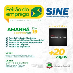 Leia maisO Sine realizará o Feirão do Emprego nesta sexta-feira, dia 19 de agosto, a partir das 8h, no Centro de Cultura de São Sebastião do Caí. Na ocasião, estarão sendo…
