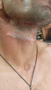 Um dos motociclistas sofreu corte no pescoço – Crédito: Talis Ferreira