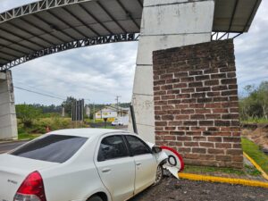 Um acidente ocorreu no início da manhã desta segunda-feira, 8, por volta de 6h30 na altura do km 33 da ERS-240, próximo do posto da Polícia Rodoviária Estadual de Montenegro. O motorista de um automóvel Toyota Etios, com placas de Montenegro, foi socorrido pelo Samu após a colisão contra o pilar do pórtico da entrada da cidade.