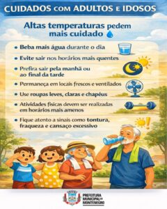 Idosos e crianças exigem atenção especial neste período, bem como a suspensão de atividades físicas intensas ao ar livre. Sintomas como tontura, náusea e cansaço excessivo são sinais de alerta e exigem busca imediata por atendimento médico. A Secretaria também lembra que os cuidados devem se estender aos animais, garantindo água fresca e abrigo do sol.