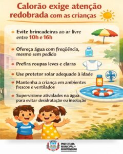 Diante do cenário, a Secretaria Municipal da Saúde reforça o alerta à população para a adoção de cuidados básicos, a fim de evitar problemas como desidratação, insolação e exaustão térmica. A orientação principal é evitar a exposição direta ao sol, especialmente entre 10h e 16h, além de manter a hidratação constante ao longo do dia.