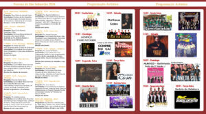 Diariamente, às 19h30, acontecem as missas da novena, sempre com diferentes padres e temas, e depois as apresentações na Praça. Dia 11 de janeiro, domingo, terá o Almoço Comunitário e o sorteio do Compre no Caí da CDL. No outro domingo, dia 18, Galinhada com Baile da 3ª idade. E no feriado municipal de 20 de janeiro, terça-feira, ocorre a tradicional procissão luminosa e o sorteio do Colabore, com muitos prêmios especiais.