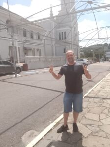 Padre Eduardo Schuster mostra a estrutura coberta que já está sendo montada